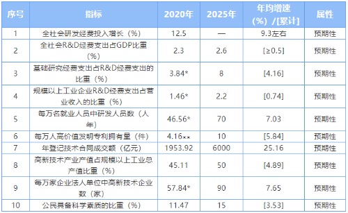 表:“十四五”科技创新发展主要指标