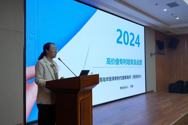 华慧泽公司合伙人刘娜就高价值专利培育进行了宣讲,分享了专利布局、专利运营、专利快速预审、国际专利申请以及成果转化等方面的专业见解和实践案例。