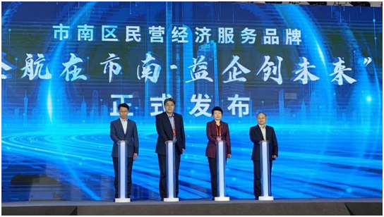 活动中,青岛市民营经济发展局党组成员、副局长江长海,青岛市工商联党组成员、副主席周雪燕,市南区政府党组成员、副区长张军,市南区政协副主席刘树国共同按下“光柱”,发布市南区民营经济服务品牌“企航在市南•益企创未来”。数字人“南南”进行品牌介绍,市南区将围绕“企航在市南•益企创未来”一个品牌,实施“决胜新赛道”“金专铸企”“益企面对面”“企明星计划”“企航计划”“金桥计划”六大主题行动,持续优化企业发展生态,推动市南区民营经济高质量发展。