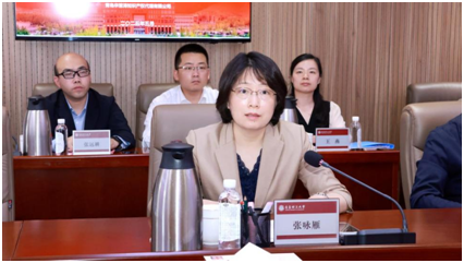 学校党委副书记车景华、青岛市市场监督管理局局长张咏雁和山东省国家知识产权?;ぶ行母敝魅纹钚掠畹攘斓汲鱿嵋?,会议由学校党委常委、副校长陈连军主持。