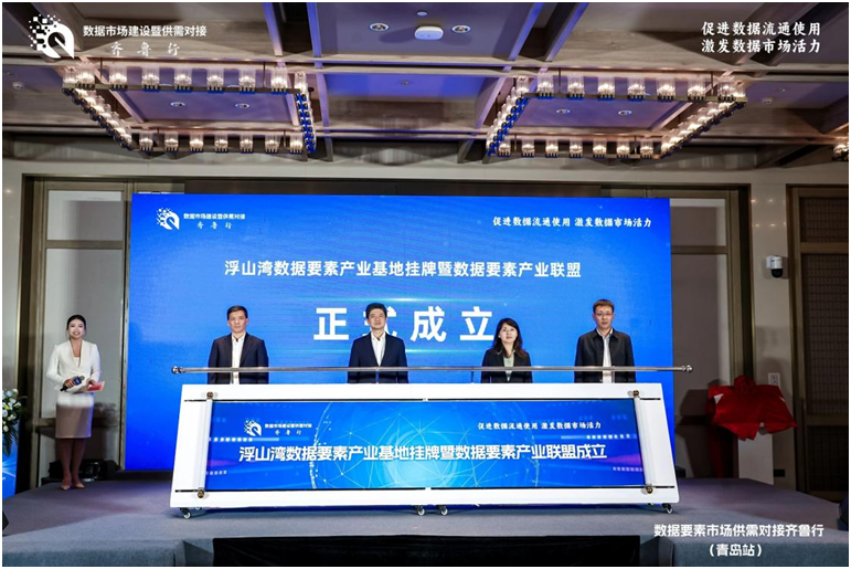 随后,市南区委书记王锋、市大数据局局长张艳、青岛华通集团董事长姜鲁青、海诺公司董事长李大涛参加了浮山湾数据要素产业基地挂牌暨数据要素产业联盟成立仪式。由浪潮数据要素、格兰德、北方健康医疗、海信网络科技等重点数据企业组成的数据要素产业联盟,将在市南区大数据局的推动下,整合联盟成员在数据采集、治理、应用、交易等领域的差异化能力,共同构建起覆盖“数据供给-技术赋能-场景落地”的全链条生态体系。浮山湾数据要素产业基地正式挂牌成立,更代表市南区数据产业集聚发展迈出重要一步,基地占地面积9.97万平方米,目前已入驻企业98家,包括浪潮数据要素、青岛苍穹数码等多家头部企业,从业人员约7700人;园区围绕绿色低碳的发展理念,搭建“脑机”超级管理系统平台,整合传统平台28个,实现园区数字化、智能化运营。