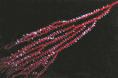 此次,研究人员根据物理特征将两块已知年龄的八放珊瑚化石放置在进化树内,利用化石年龄和它们在八放珊瑚进化树中各自的位置来粗略测算八放珊瑚谱系何时分裂成两个或更多分支,然后绘制了以活生物发光物种为特征的系统发育分支。