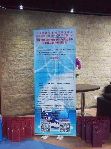 2014年2月26-27日,由中国高新技术项目研究中心、青岛华慧泽知识产权代理有限公司共同主办的“国家资助项目创新驱动与资金申报专家公益指导班研讨会”,在青岛市技术交易市场成功举办。本次活动由青岛华慧泽知识产权代理有限公司承办,面向青岛市科技型企业和高校,活动围绕技术成果转化与国家资助项目及申报进行了解读和指导。
