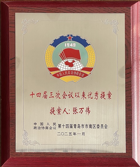 市南区政协委员、青岛华慧泽知识产权代理有限公司董事长张万伟参加会议并荣获“2024年度委员活动先进个人”和“优秀提案”表彰。