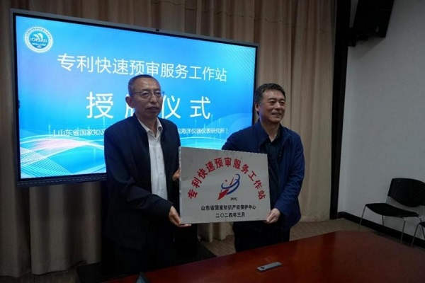 尹强民、孙继昌为山东省科学院海洋仪器仪表研究所专利快速预审服务工作站揭牌