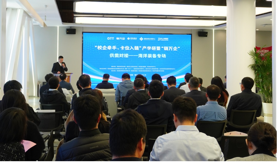 同日,“校企牵手、卡位入链”产学研暨“链万企”供需对接——海洋装备专场活动在蓝谷举办。该活动由柠檬豆主办,山东海洋集团、中国海洋大学、青岛海洋科技中心等高校院所、行业协会代表、金融机构等40余家单位齐聚一堂,共商产研合作大计,共谋海洋发展举措?;嵘暇傩?ldquo;校企牵手”仪式,森科特与中国海洋大学黄振教授、越海机械与青岛科技大学谭龙教授、广能橡胶与省海洋科学研究院李振教授作为校企代表进行线下“牵手”,通过云上研发平台建立“朋友式”紧密合作关系。