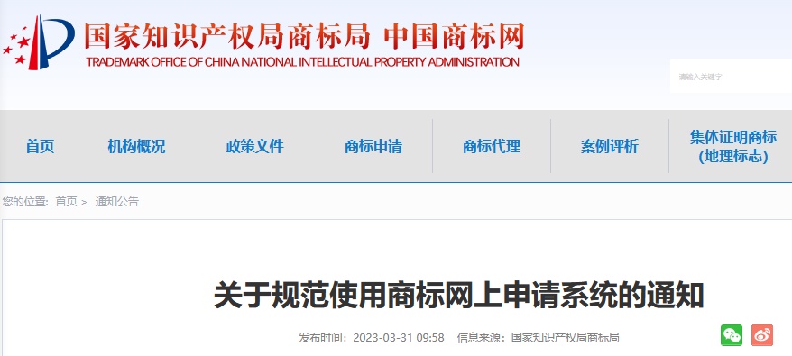 关于规范使用商标网上申请系统的通知
