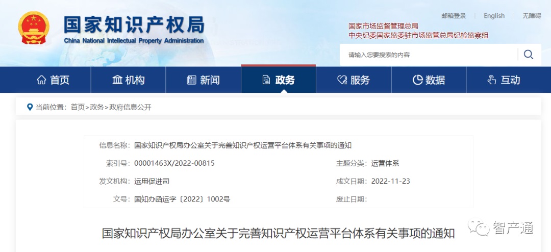 国知局:完善知识产权运营平台体系有关事项