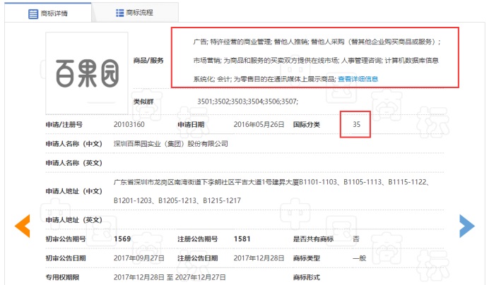 例如5类医药+35类药店、25类服装+35类服装店、20类家具+35类家具店等等,就连43类餐饮服务都得加一个35类,谁让35类里面有一项“饭店商业管理”服务呢。