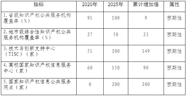 “十四五”时期知识产权公共服务发展主要指标